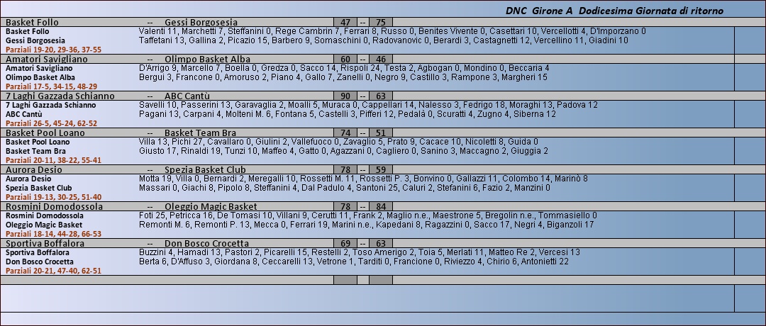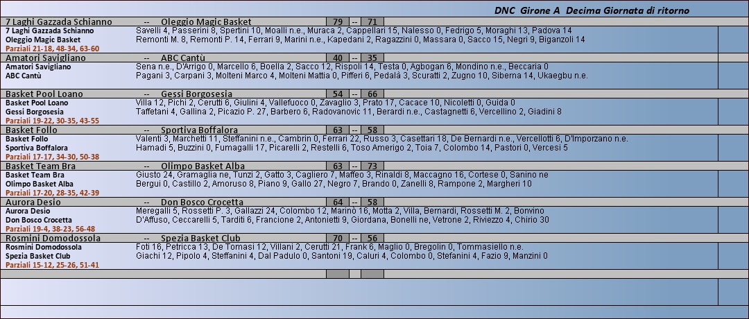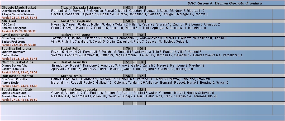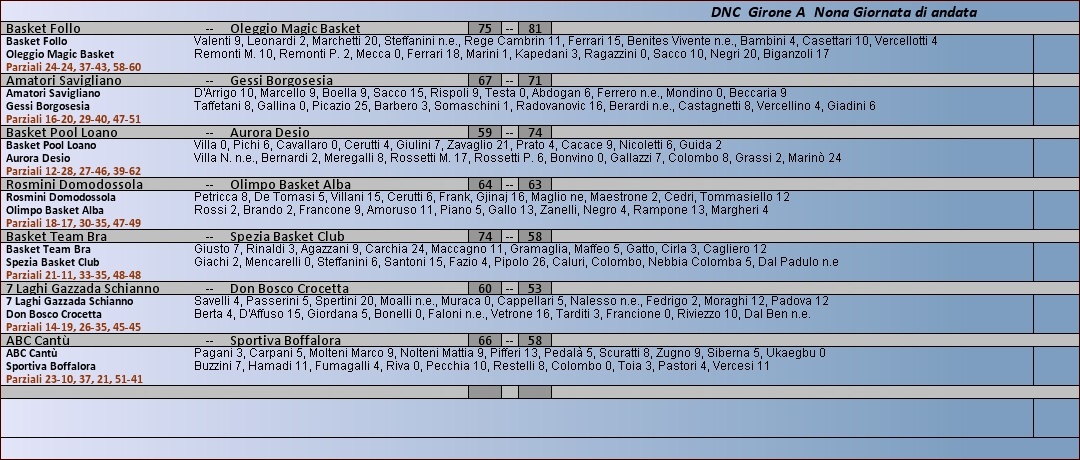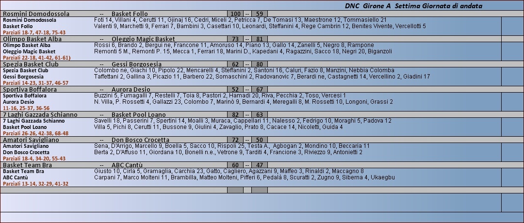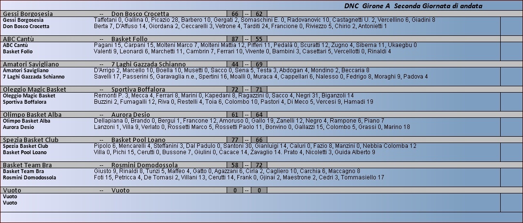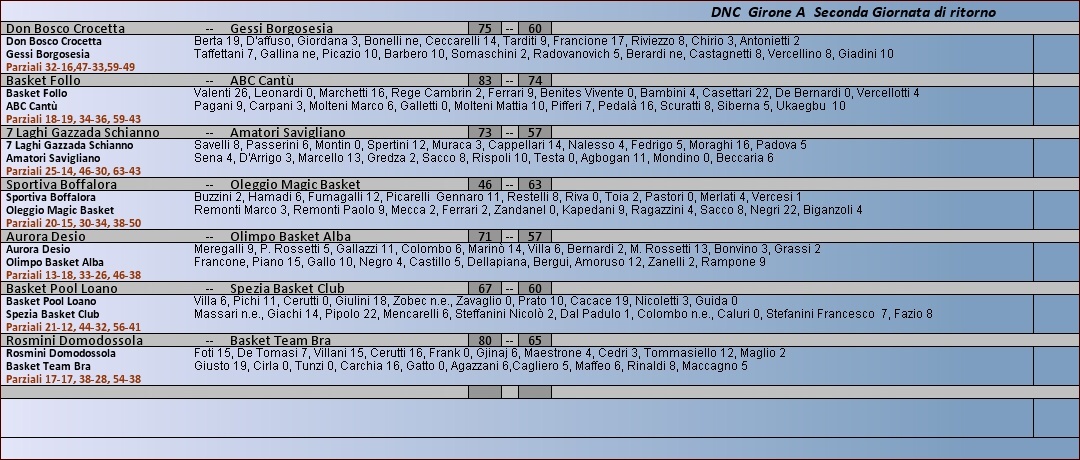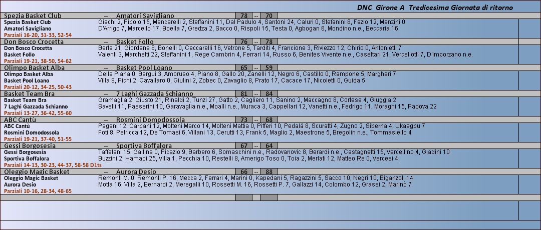 Archivio anni precedenti 2013 - 2014 Dnc Girone A Tabellini