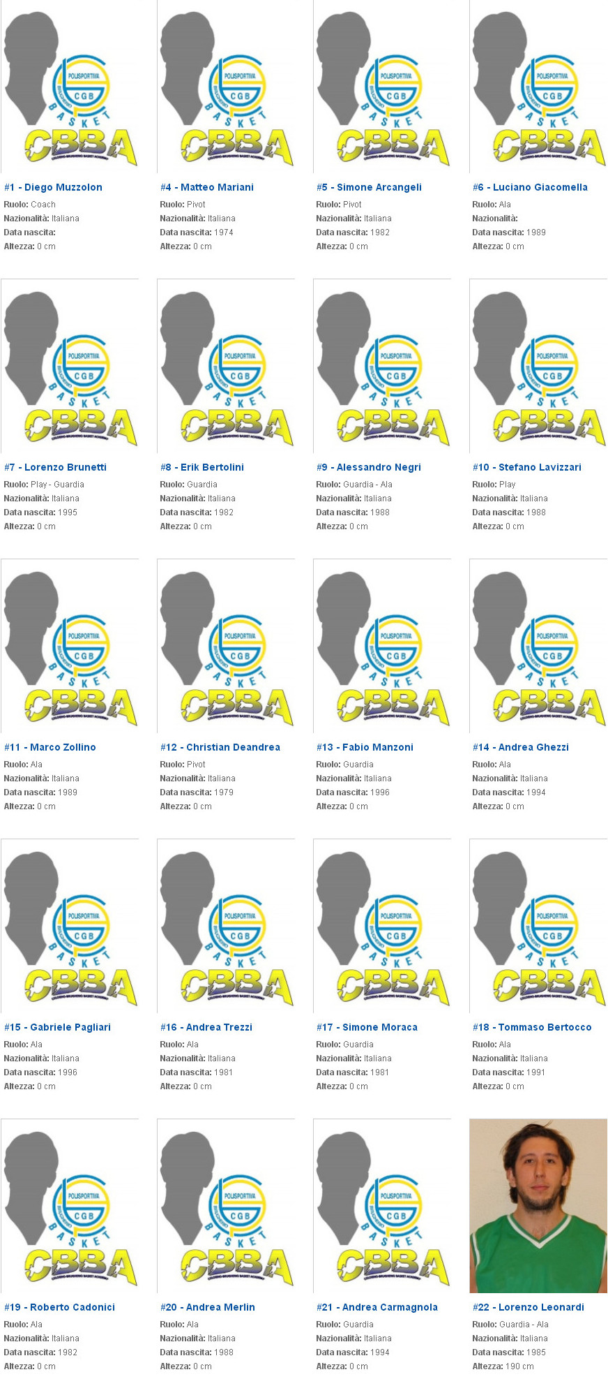 Archivio anni precedenti 2013 - 2014 D Lombardia Girone C Squadra C.B.B.A. Brugherio
