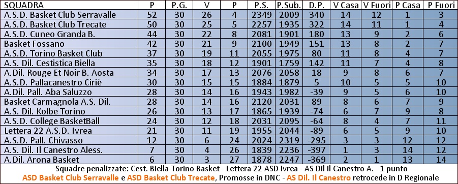 Archivio anni precedenti 2013 - 2014 C Piemonte Girone Unico Classifica Generale