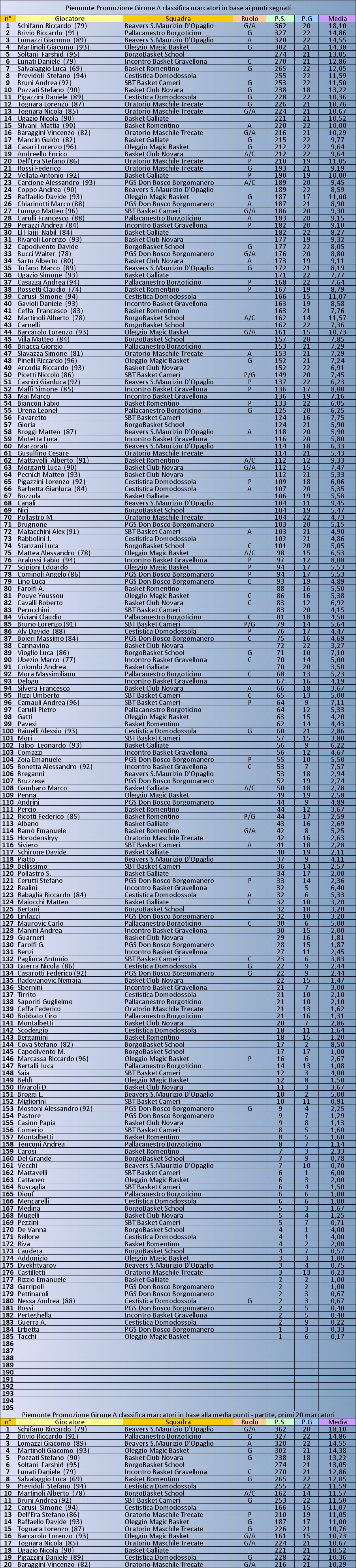 Archivio anni precedenti 2013 - 2014 Promozione Piemonte Girone A Classifica Marcatori