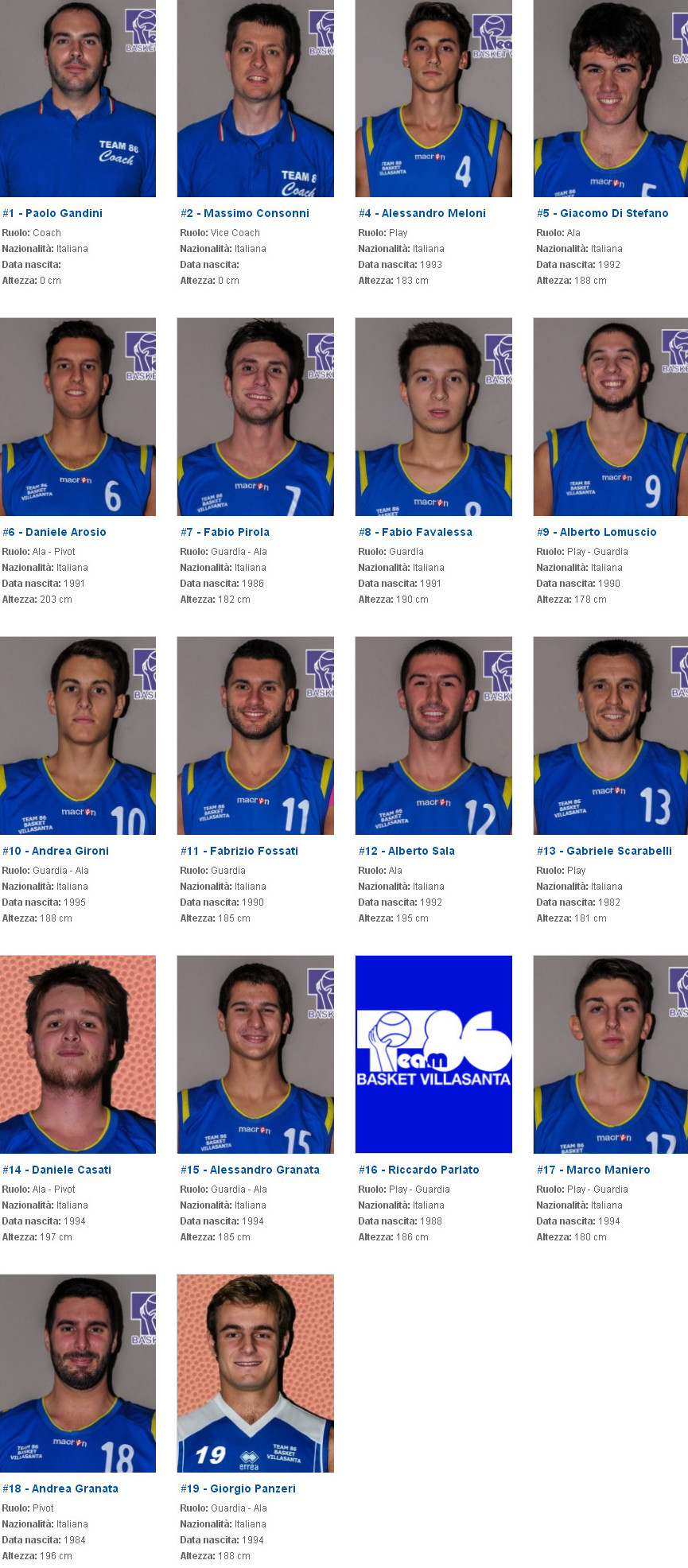 Archivio anni precedenti 2013 - 2014 C Lombardia Girone B Squadra Team 86 Villasanta