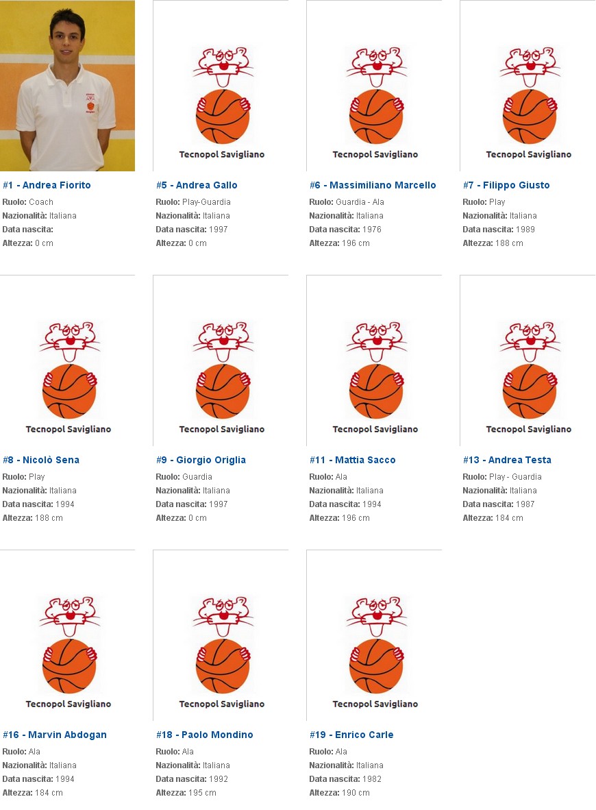 Roster Serie C Girone A Amatori Savigliano
