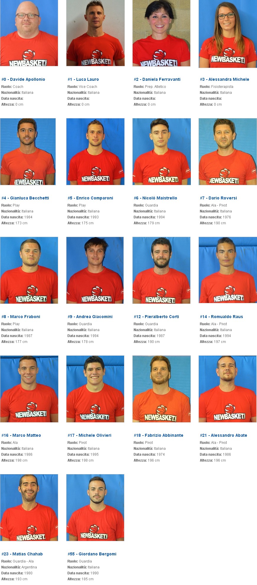Roster D Lombardia Girone A ASD New Basket Prevalle