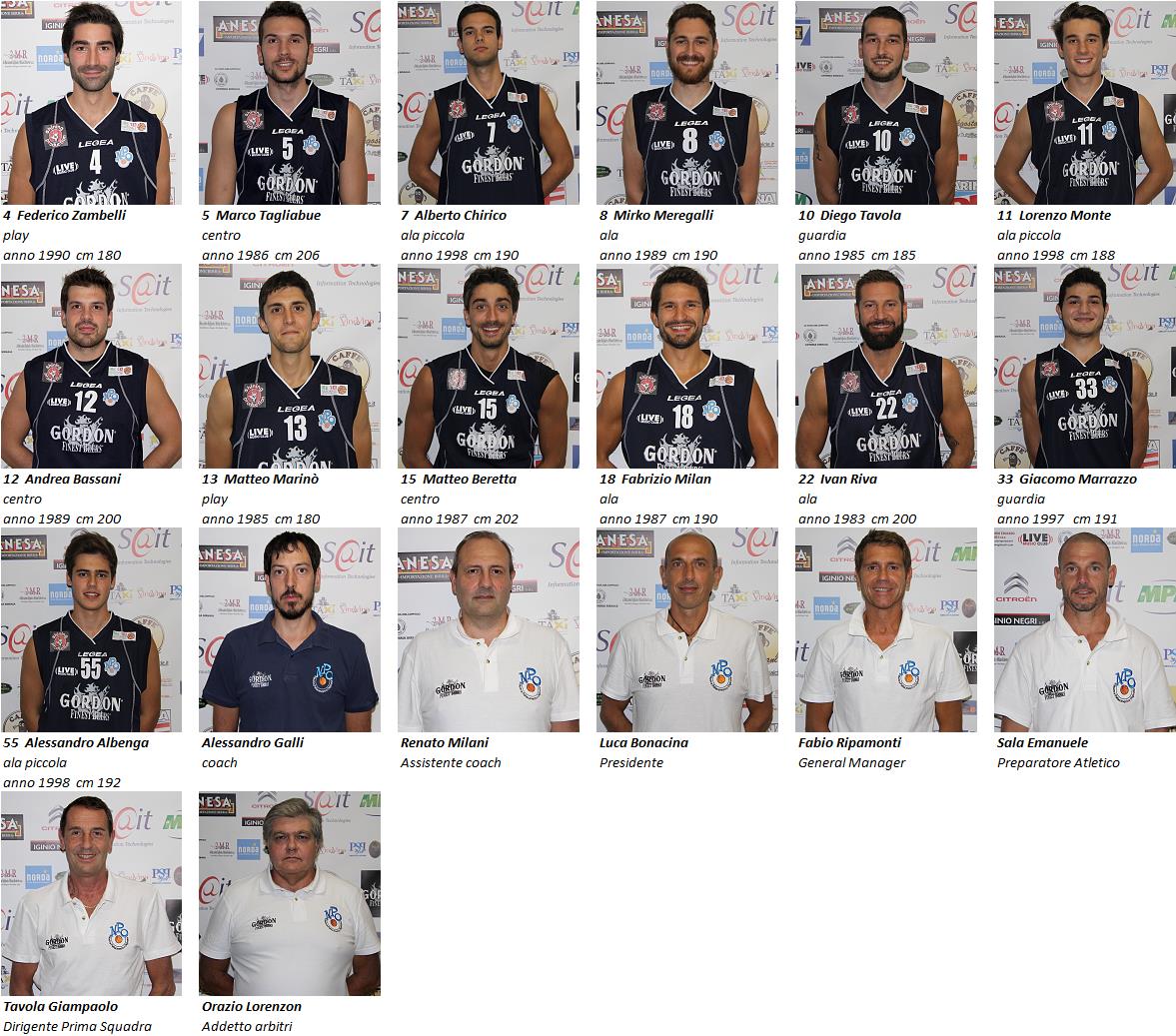 Roster  C Gold Lombardia Girone B  -- Nuova Pallacanestro Olginate